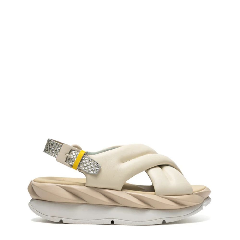 La sandalia Ivory de 4Ccccees en color beige destaca por su diseño contemporáneo y su máximo confort. Fabricada en piel de alta calidad, incorpora un piso de volumen de 6 cm que aporta altura con una estética moderna y actual.