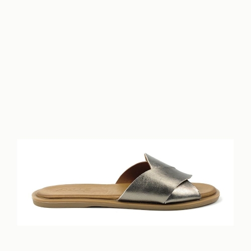Sandalia plana de mujer de la marca Adelle. Fabricada en piel y sin cierres. Pala ancha delantera con tiras entrelazadas. Suela de goma antideslizante y plantilla de piel que proporciona un acolchado con extra de comodidad. Sandalia ideal para llevar a diario con cualquier prenda.