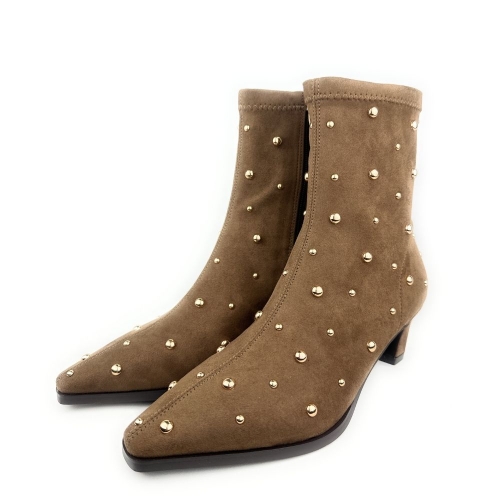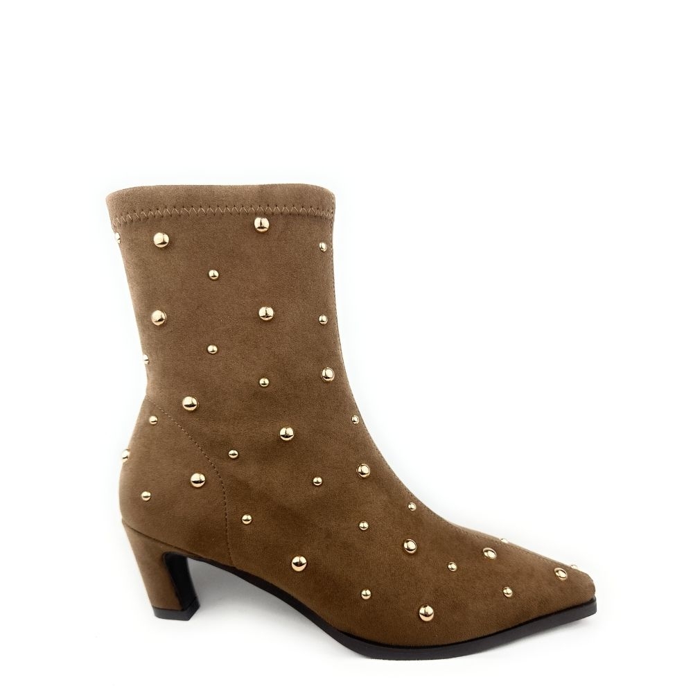 Confeccionado en piel de primera calidad, su diseño con elástico lateral lleno de remaches metálicos le da un aire atrevido y moderno.