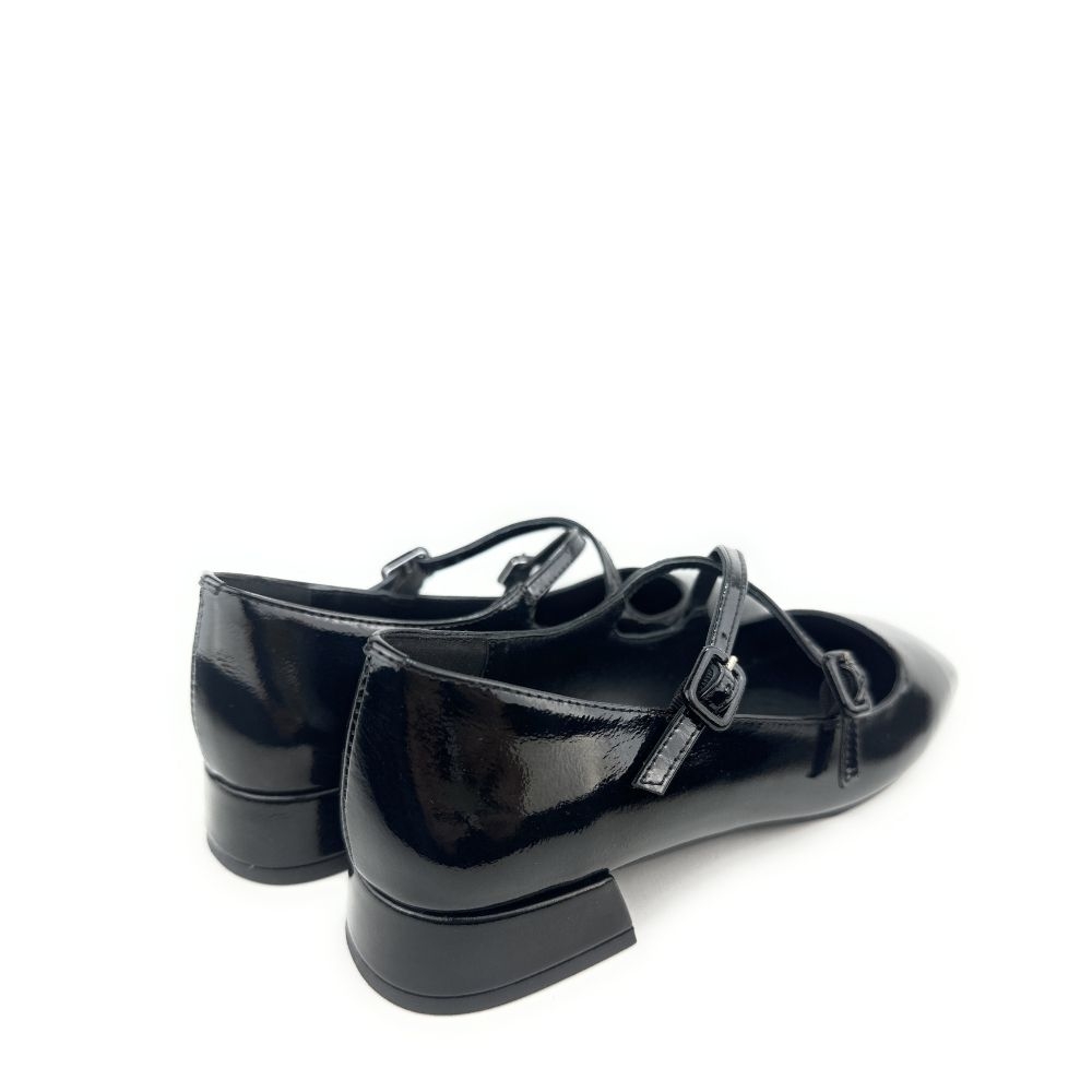 La Mary Jane Nadia de Adelle en piel negra reinventa el clásico zapato de pulsera con un diseño contemporáneo y femenino. Confeccionada en piel natural de alta calidad, destaca por sus tiras cruzadas en el empeine, que aportan sujeción, elegancia y un toque sofisticado a cada paso.