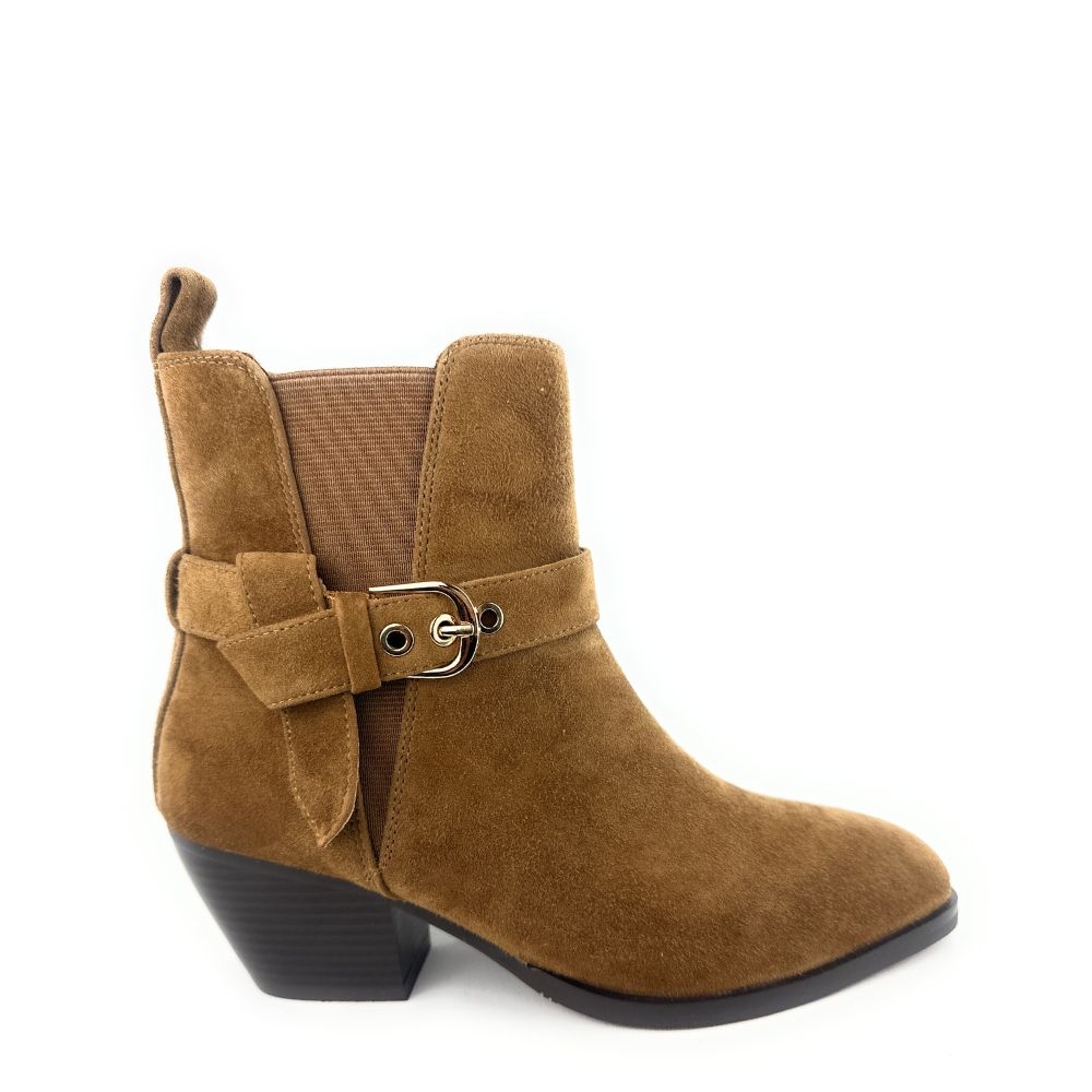 El detalle lateral de hebilla con lazo decorativo añade un toque de distinción, mientras que la cremallera interior garantiza un ajuste cómodo y práctico. Su tacón de 7 cm ofrece la altura ideal para estilizar la figura sin renunciar al confort.