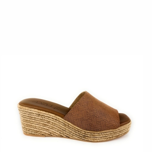 Sandalia tipo zueco de mujer con 6 cm de cuña. Sandalia de la marca Adelle con una tira ancha delantera que aporta mayor comodidad y agarre. Fabricada en piel gravada. Sandalia ideal para combinar con vestidos y jeans.