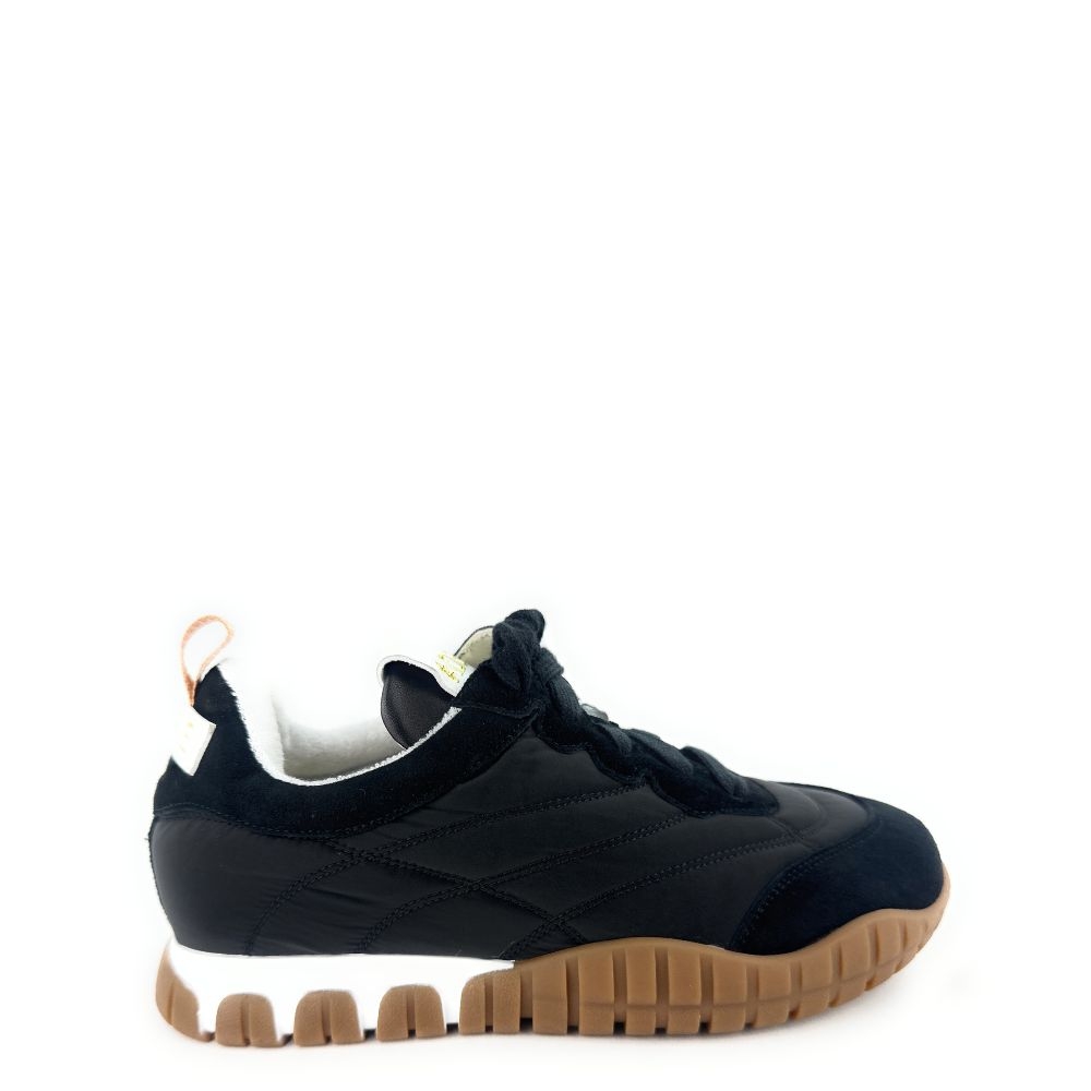Su suela de goma y EVA, resistente y flexible, presenta un innovador patrón inspirado en neumáticos que mejora la tracción y durabilidad. La plantilla extraíble forrada en piel aporta un confort excepcional, mientras que los detalles con logo serigrafiado en la lengüeta, el talón y la plantilla reflejan la exclusividad de la firma.