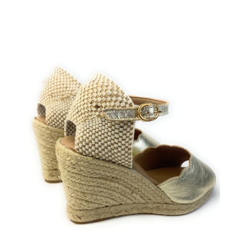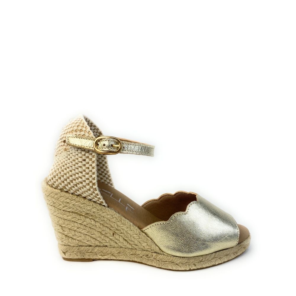 Sandalia de piel de la marca Adelle, con planta acolchada y piso de Yute natural. Cierre hebilla. Cuña de 7cm. Suela antideslizante. Muy cómodo y veraniego para tus mejores looks de esta temporada. Cosidos a mano. Producto diseñado y fabricado en ESPAÑA. Esencial en tu fondo de armario.