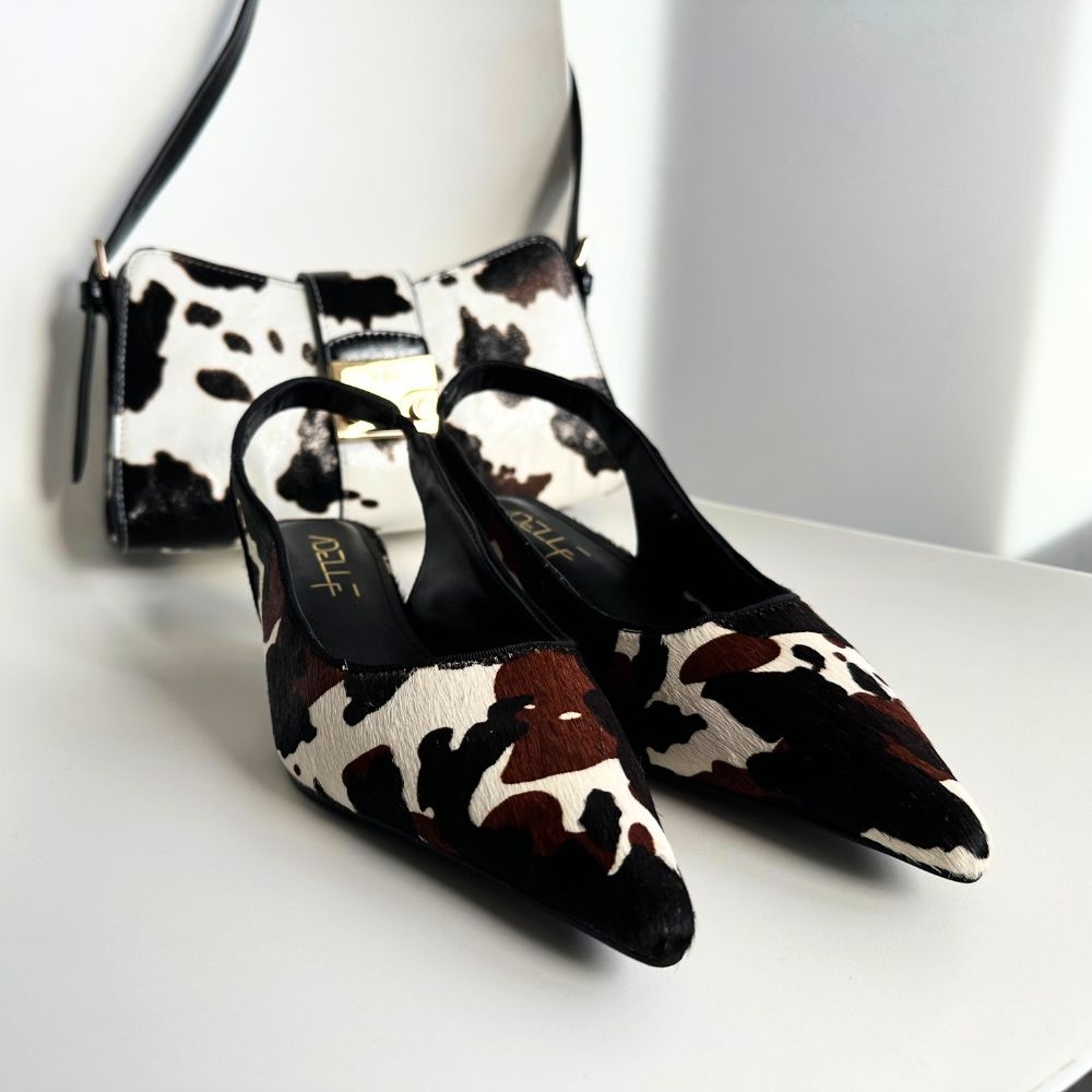 SALÓN DAFNE DE ADELLE EN PIEL DE POTRO CON ESTAMPADO DE VACA – ELEGANCIA SALVAJE Y SOFISTICADA