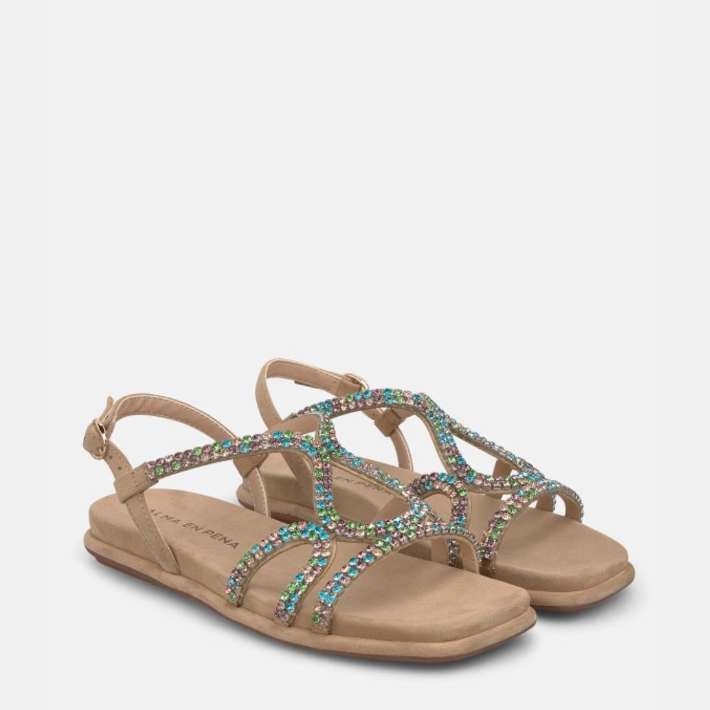 Sandalia Plana Alma en Pena V2651514 Pedrería Multicolor Diamonds