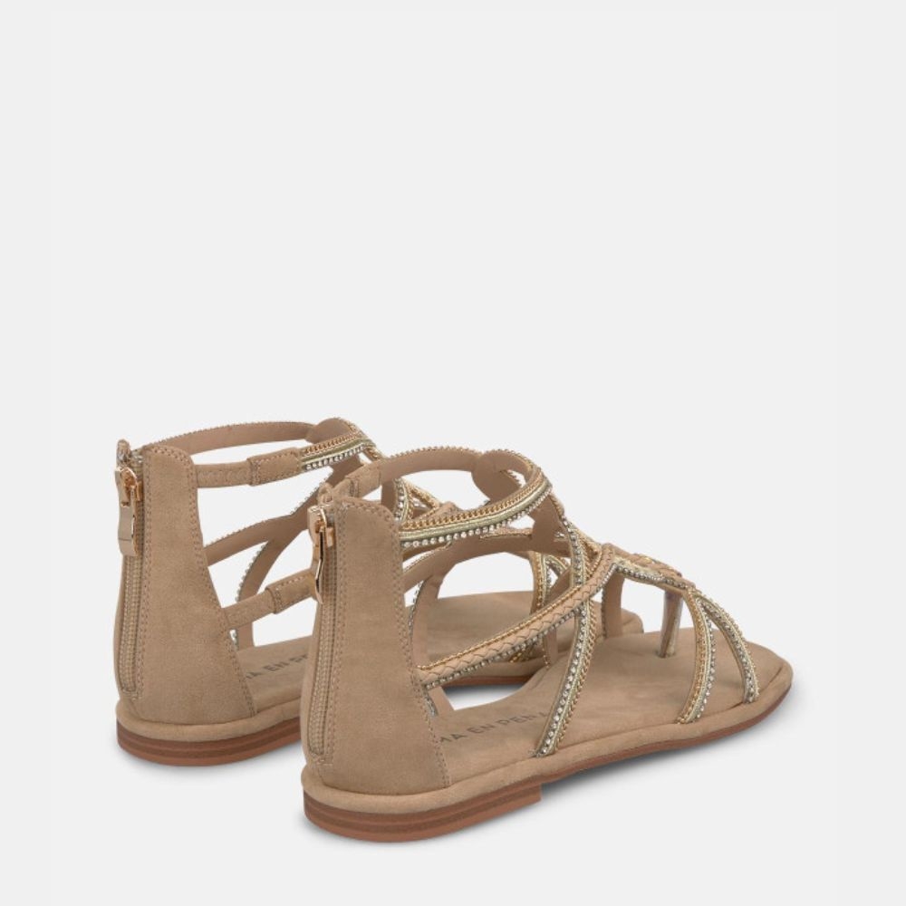 Sandalia Plana Alma en Pena V2651705 Siena Sand Tiras Pulsera