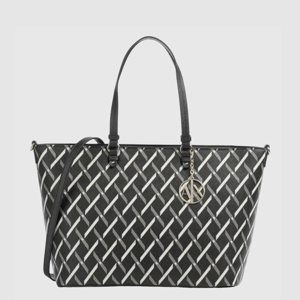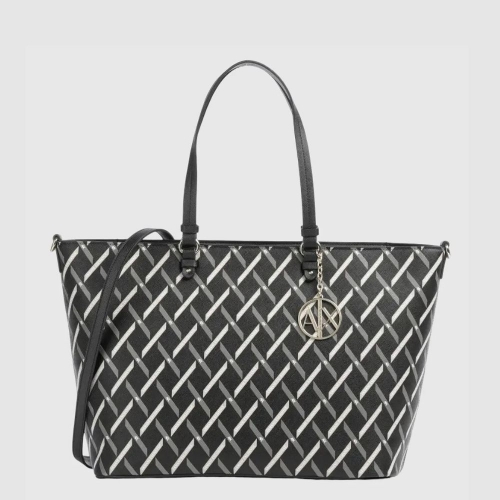 El bolso de Armani Exchange combina funcionalidad y estilo en un diseño moderno con patrón gráfico y colgante metálico decorativo. Fabricado en material sintético resistente, incluye asas dobles y correa ajustable para mayor versatilidad. Su amplio compartimento interior con cierre de cremallera lo hace ideal para el uso diario o para llevar todo lo necesario con elegancia.