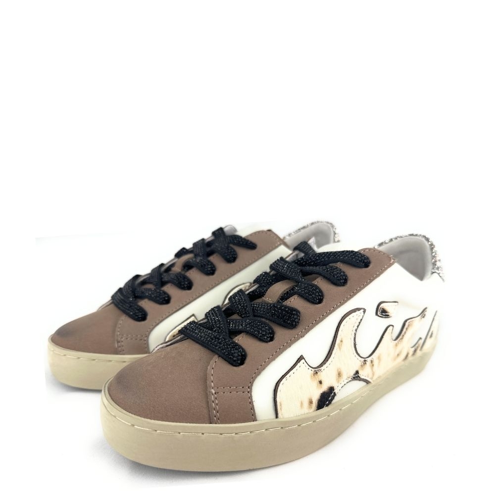Llévate a casa la versión más audaz de la temporada con estas zapatillas Gamin, que se han coronado como una de las piezas más codiciadas para este otoño-invierno 2025. El talón revestido de glitter plateado atrapa la luz a cada movimiento, mientras que la llama lateral en animal print vaca añade ese toque salvaje y moderno que todas desean en su armario casual. Una fusión única de brillo y personalidad que hace que el calzado deje de ser accesorio para convertirse en protagonista.
