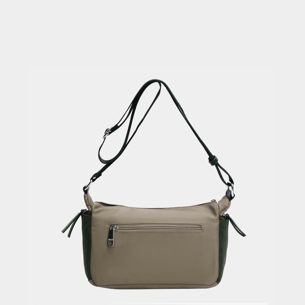 Bolso bandolera Estepona disponible en negro, kaki, canel ay bordo. Está confeccionada en nylon de alta calidad y detalles en pu. El punto fuierte de esta bandolera es la variedad de bolsillos con los que cuenta, tanto en el exterior como interior. Su asa es ajustable . Detalles metálicos de color nickel.