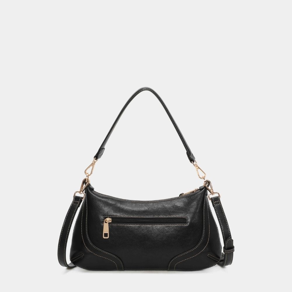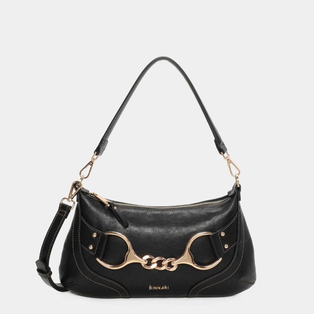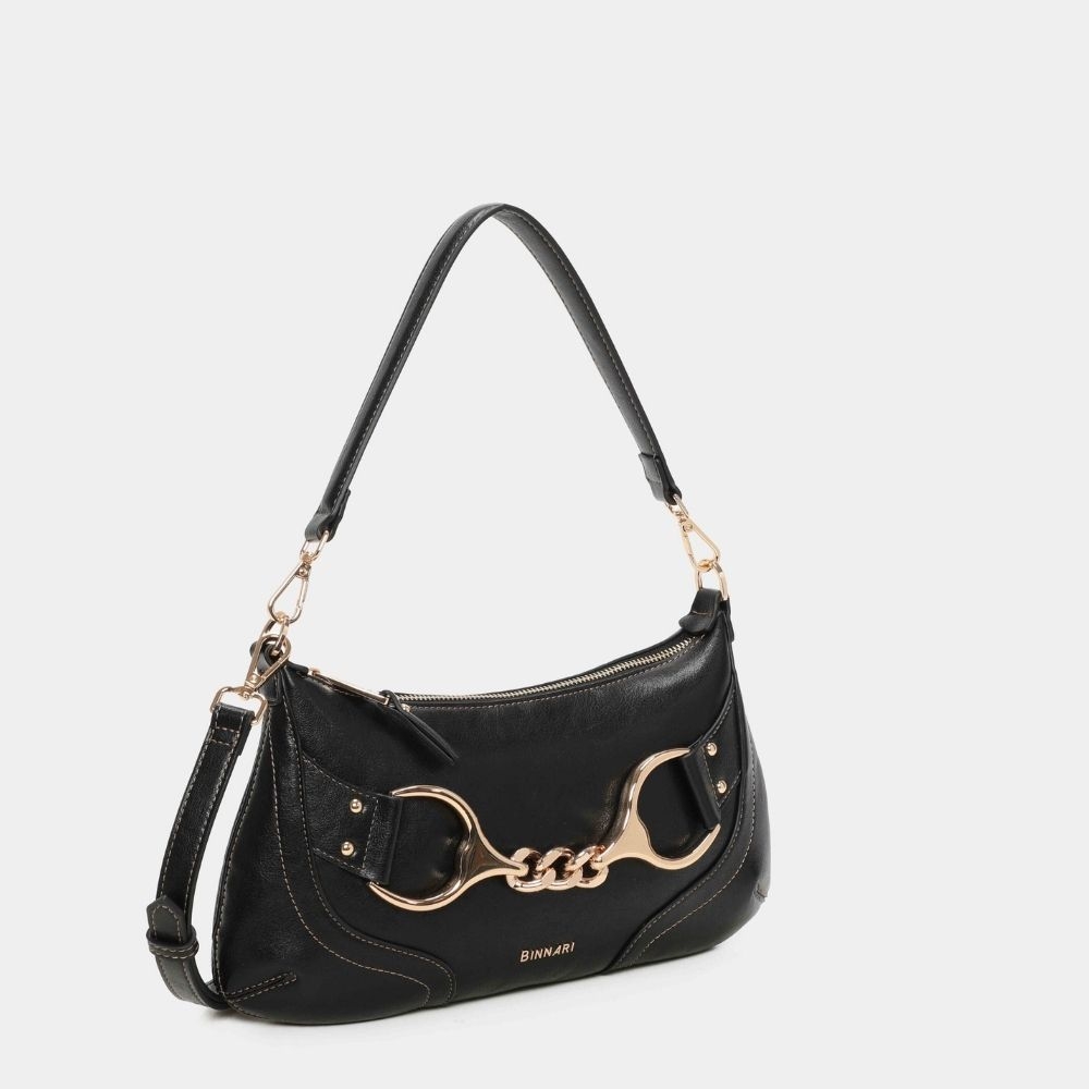 Bolso hombro pequeño Fanny disponible en negro, bordoy cuero. Es un bolso muy práctico que se puede llevar tanto como hombro como bandolera, ya que lleva un asa extra en su interior. Esta confeccionado en pu de alta calidad. Los detalles metálicos son de color oro claro .