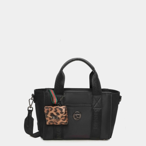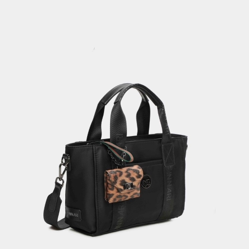 ¡Uno de los bolsos tendencia de esta temporada! Bolso mano Fini disponible en 3 colores: negro, cuero y kaki. Confeccionado en nylon reciclado y detalles en pu, lleva un bolso pequeño decorativo extraible en parte frontal del bolso, así como un bolsillo.Se accede al interior por medio de una cremallera superior. Detalles metálicos en color nickel negro.