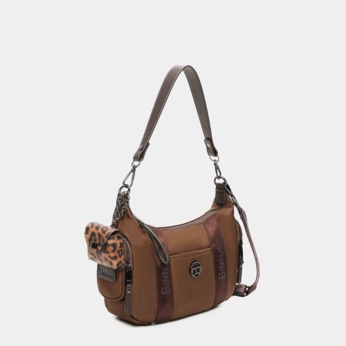 Bolso hombro Fini disponible en 3 colores. Bolso de tamaño medio, con los detalles en efecto piel y detalles metálicos en color nickel negro. Lleva al igual que el resto de la colección, un bolso extraible en la parte delantera… Su tamaño medio es ideal, lo que nos permite llevar nuestros imprescindibles perfectamente. En la parte trasera encontramos un bolsillo con cremallera. Su asa es ajustable .