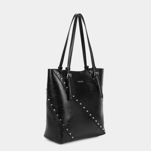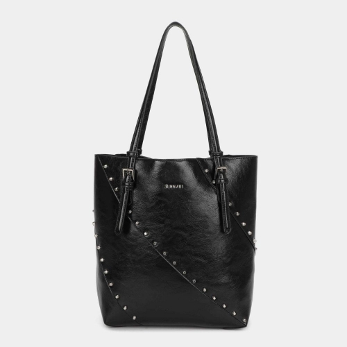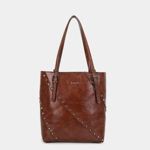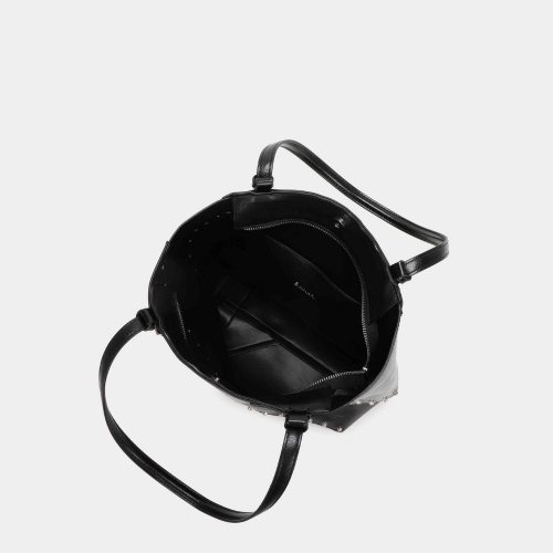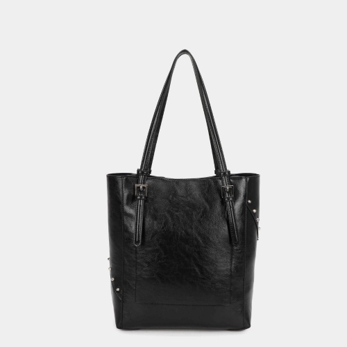 Bolso dos asas Freeda disponible en color negro, cueroy taupe. Está confeccioando en pu de alta calidad. Además tiene unas tachas decorativas en la parte delantera en color nickel ,haciendo de un bolso sutil, algo más especial. Asa ajustable en su interior para mayor comodidad.
