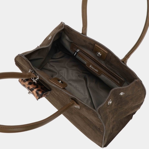 ¡El bolso tendencia que sí o sí tienes que tener en tu armario! Nuestro bolso 2 asas Glen está disponible en 4 colores. Además cada color esta hecho con un materia diferente, es decir, negro y bordo en pu y los colores kaki y marrón en antelina. El compartimento principal tiene cierre de imán. Así mismo en su interior encontramos un bolsillo adicional con cremallera. Los detalles metálicos son de color nickel.