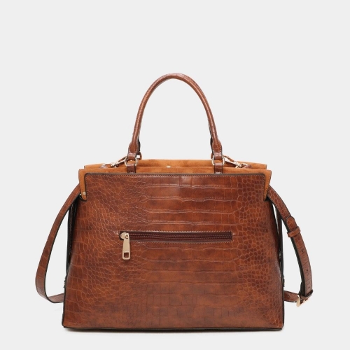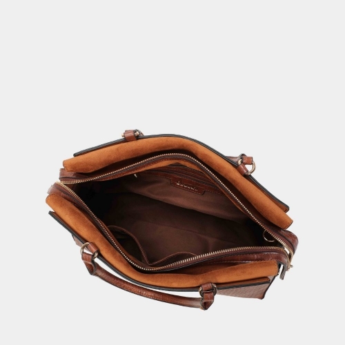 Bolso de mano Mandy confeccionado en coco sintético, además de detalles en antelina. Está disponible en color negro, cuero y marrón. De tamaño mediano pero capaz de guardar todo lo necesario. Bolso super práctico para el día a día. Se accede a su interior por medio de una cremallera . En él, encontramos 3 bolsillos, uno de ellos con cremallera.Cuenta con dos posiciones, mano y bandolera.