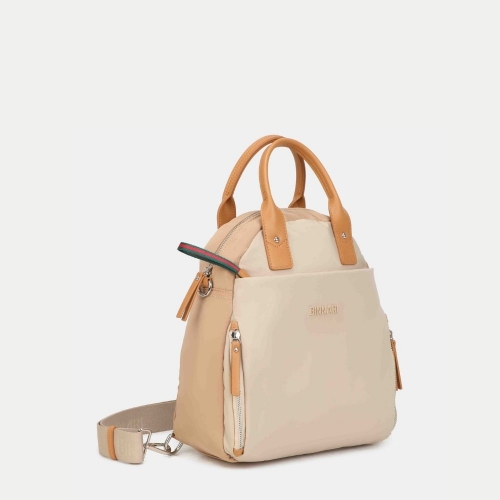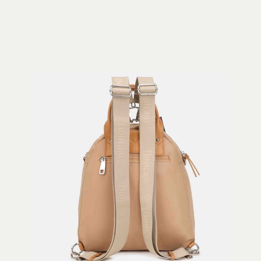 Mochila Binnari Hiedra Mujer Arena Nylon PU Multifuncional
