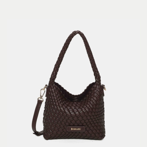 Bolso Binnari Tria Mujer Marrón Oscuro PU Trenzado Hombro Bandolera