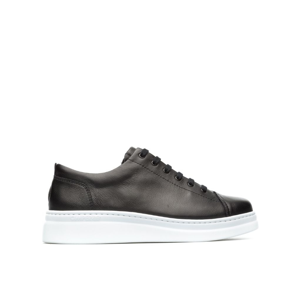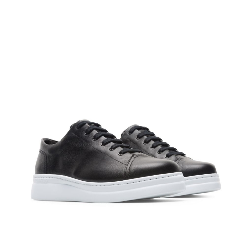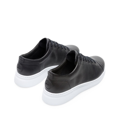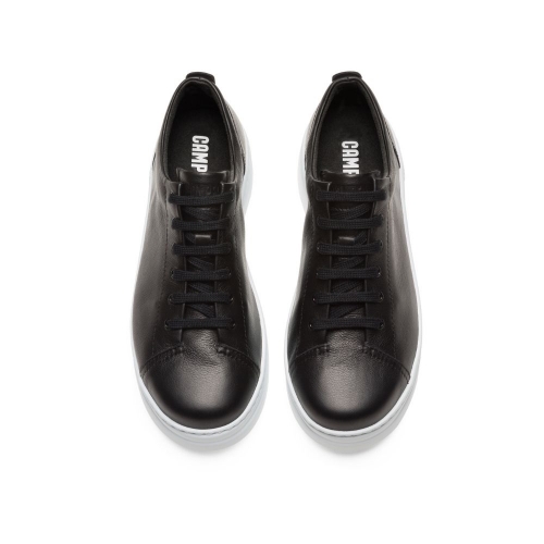 Sneaker negra en piel flor para mujer con suela blanca de EVA.
