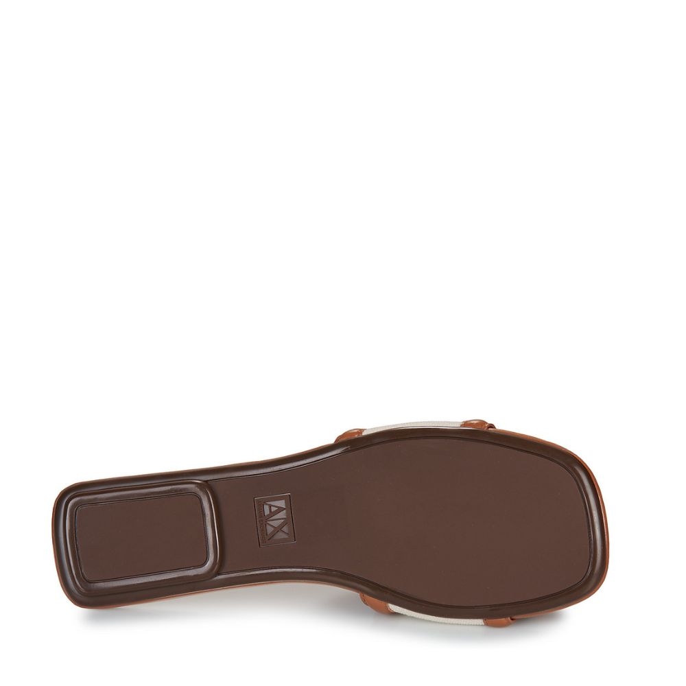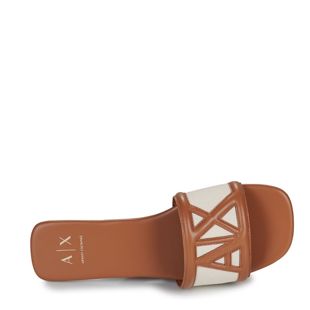 Los zuecos de Armani Exchange en color beige destacan por su diseño sofisticado, minimalista y contemporáneo, ideales para completar looks estivales con estilo y comodidad. Su estética limpia se combina con el logotipo de la firma en gran formato, aportando un toque distintivo y moderno.