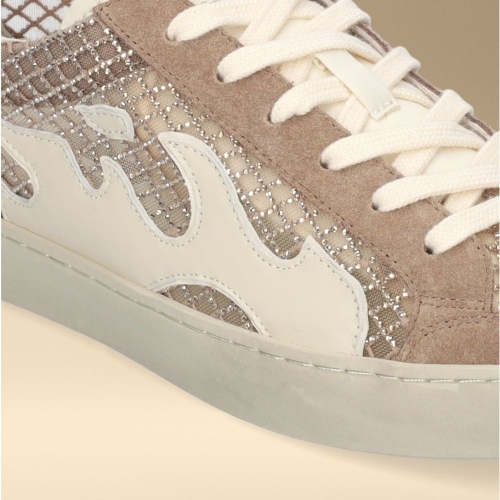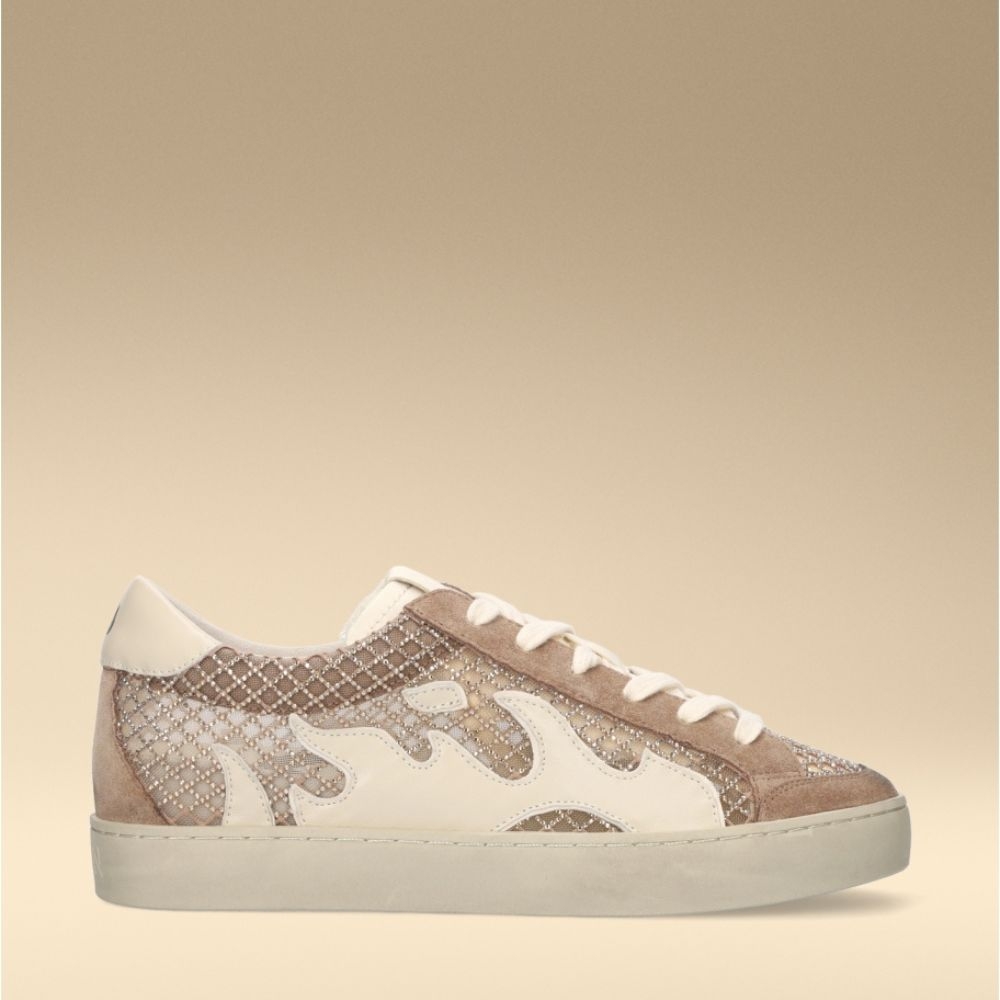 Este modelo incorpora rejilla en tono taupe con un sutil efecto brillo que aporta un toque luminoso y moderno. Los detalles en taupe en la talonera y en la zona de los cordones refuerzan la armonía del diseño, mientras que los cordones en color beige suavizan el conjunto creando un equilibrio perfecto.