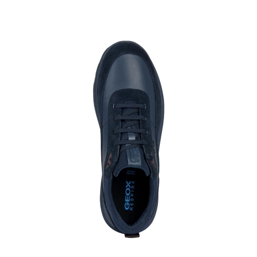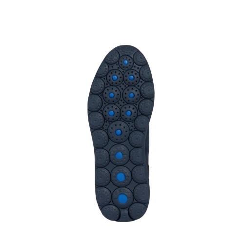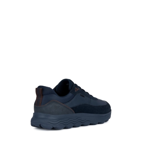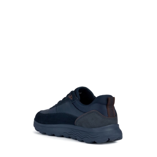 Deportiva de hombre, unión ideal entre confort y diseño emblemático.Realizada en napa y piel gamuzada color azul marino, Spherica reescribe la historia de las deportivas gracias al estilo emblemático y al excelente nivel de amortiguación y comodidad. La elección ideal para quienes buscan un modelo confortable y transpirante de diseño a la moda.