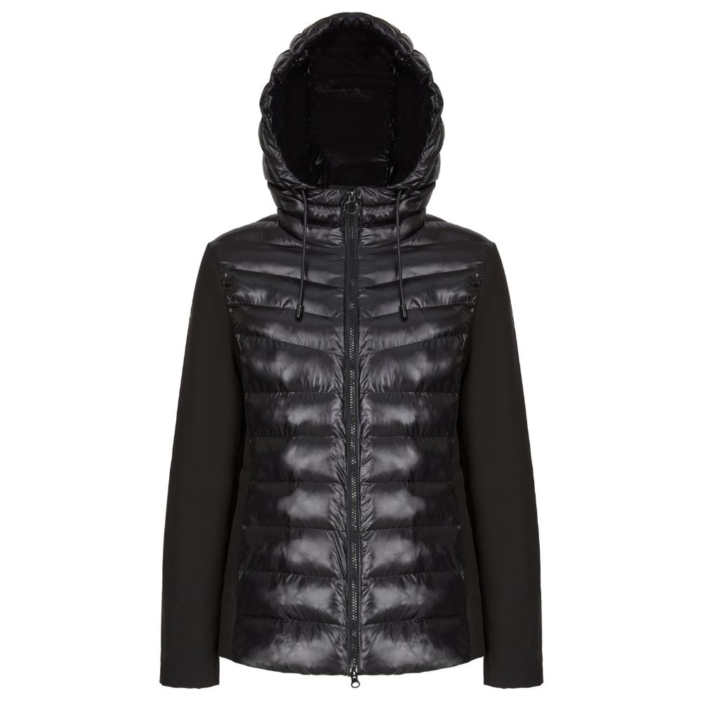 La parka corta GEOX Spherica™ para mujer combina estilo, protección y sostenibilidad en una prenda perfecta para el ritmo urbano. Su diseño moderno y femenino en color negro brillante realza cualquier look, mientras su relleno Thermore® Ecodown —fabricado con poliéster reciclado 100 % posconsumo— ofrece un aislamiento ligero y cálido sin añadir volumen.