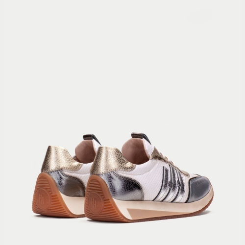 Deportiva con punta cuadrada elaborada en piel. Detalle de doble “H” en el lateral y cierre de cordones. Este zapato incorpora la tecnología TRIFLOW, amortigua cada paso aportando flexibilidad y confort en la pisada, gracias a su triple almohadillado, y además cuenta con plantilla extraíble.