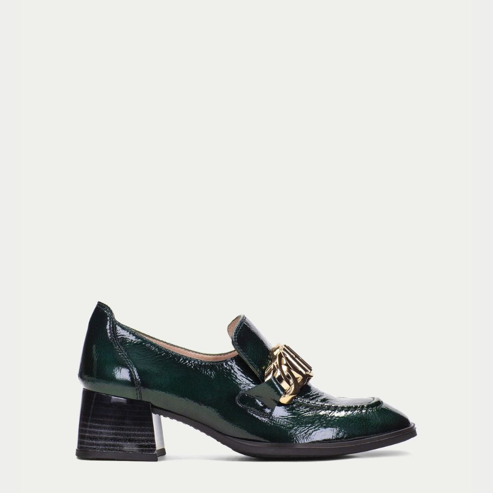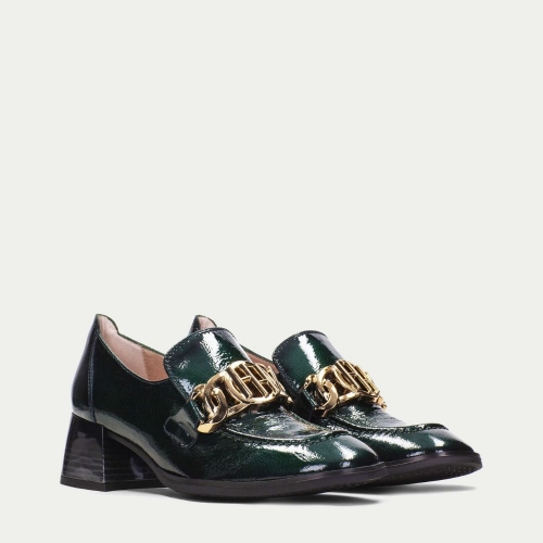 "Mocasín con tacón y adorno de cadena con isotipo doble ""H"" en el empeine. Este zapato incorpora la tecnología TRIFLOW, amortigua cada paso aportando flexibilidad y confort en la pisada, gracias a su triple almohadillado. Altura: 4,5 cm."