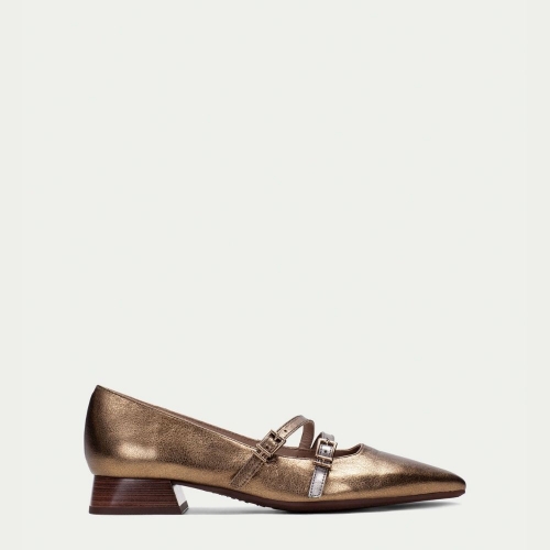 Bailarina de piel tipo slingbacks con tacón de 2,5 cm. Diseñadas con 2 tiras finas que incorporan un cierre de hebilla, permitiendo un ajuste perfecto al pie y generando un contraste elegante.