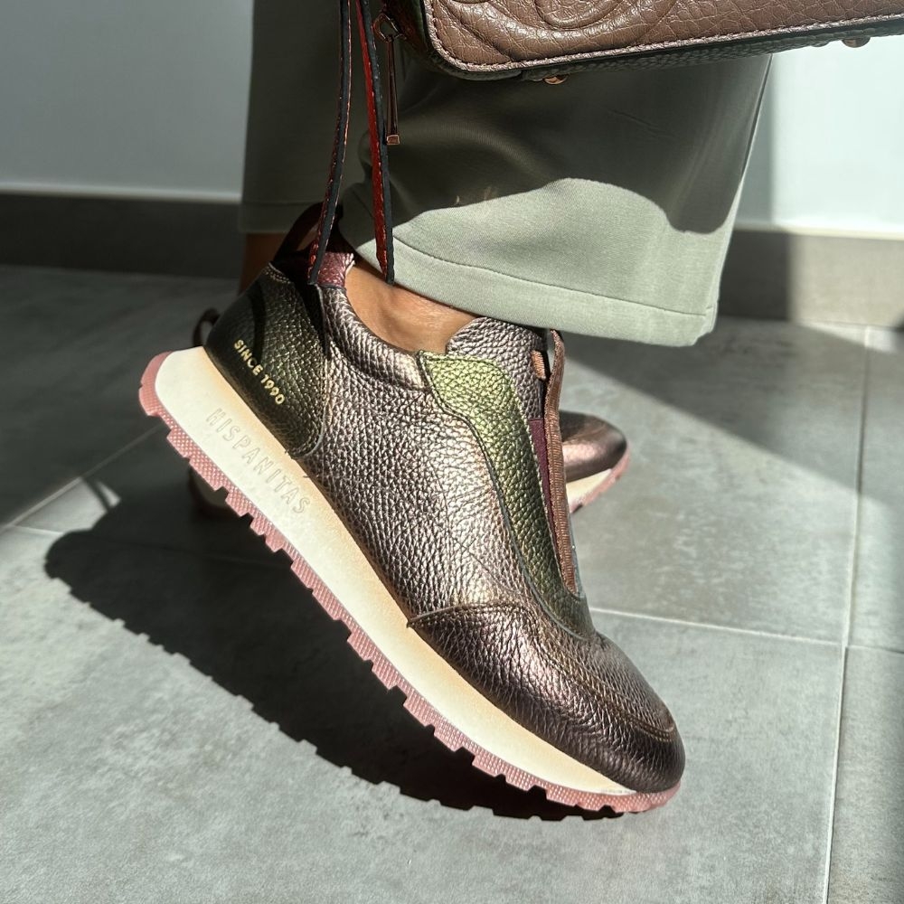 El Deportivo Kansas de Hispanitas es la combinación perfecta entre diseño moderno y comodidad excepcional. Confeccionado en piel combinada con nylon, este deportivo presenta un elegante diseño slip-on con banda elástica en el empeine, que facilita un calce rápido y seguro.