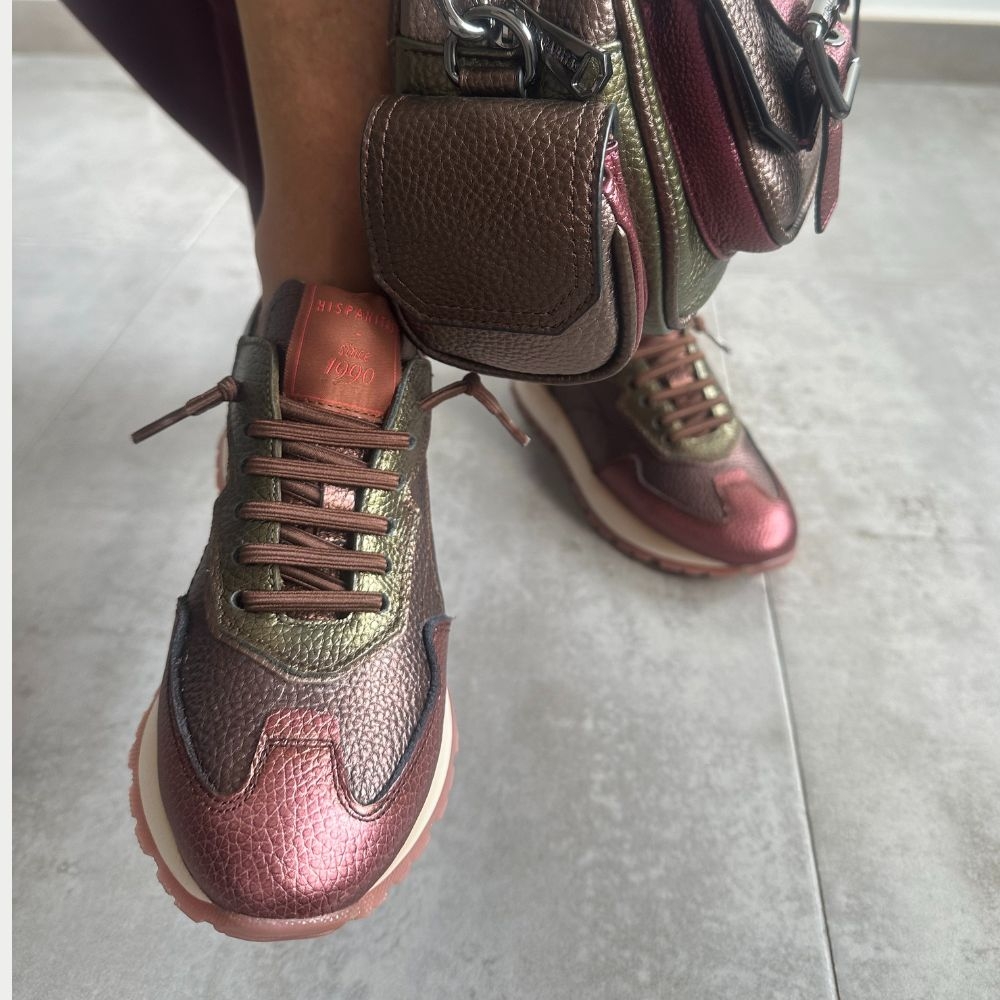 Estas sneakers Kansas Multi-Metal de Hispanitas en acabado gris plateado metálico redefinen el concepto de calzado deportivo: funcionalidad y moda se unen en una propuesta pensada para el día a día. Su tejido técnico y piel, acompañados de cordones elásticos y adicionales de algodón, ofrecen un calce perfecto sin complicaciones. La suela de goma termoplástica de 3 cm proporciona la firmeza justa con una pisada ligera.
