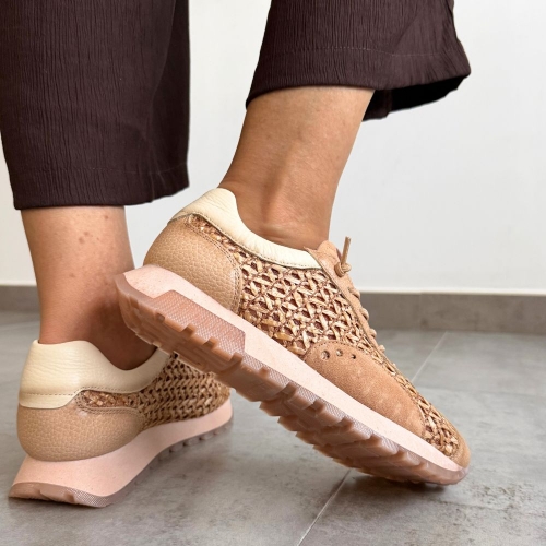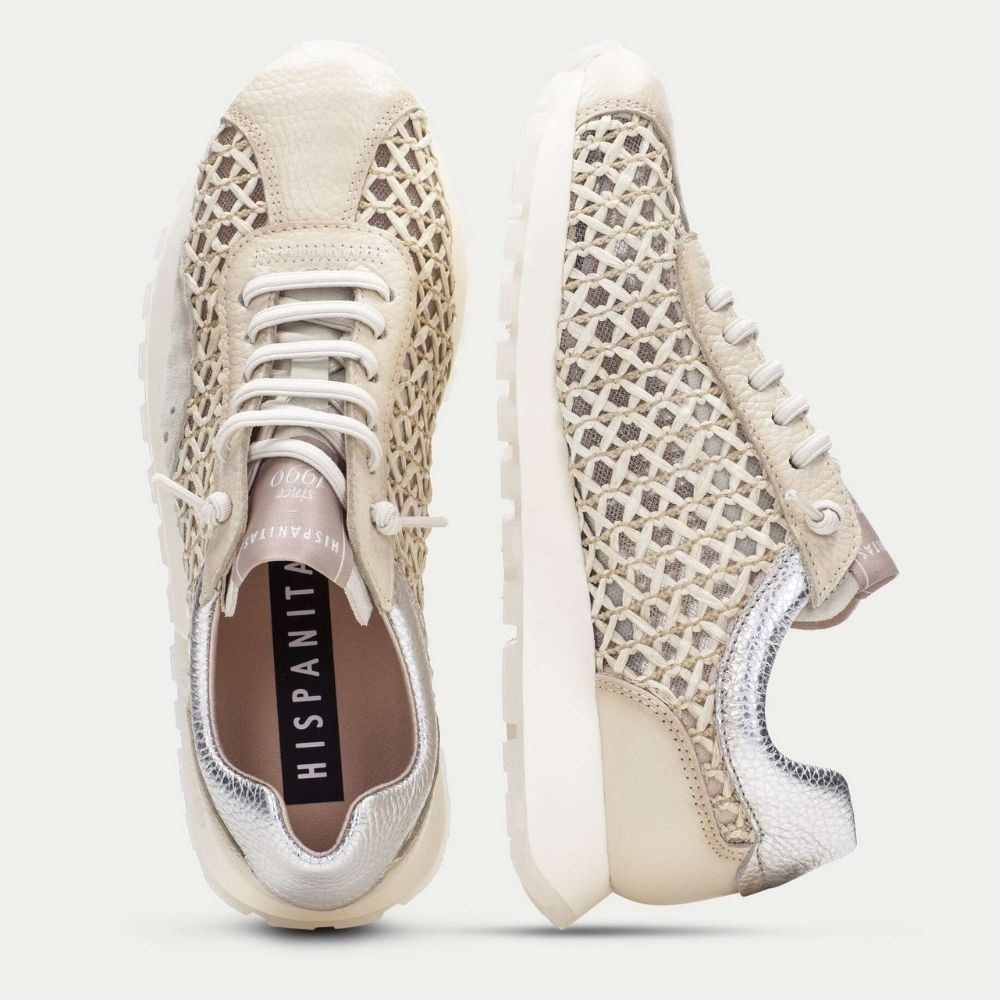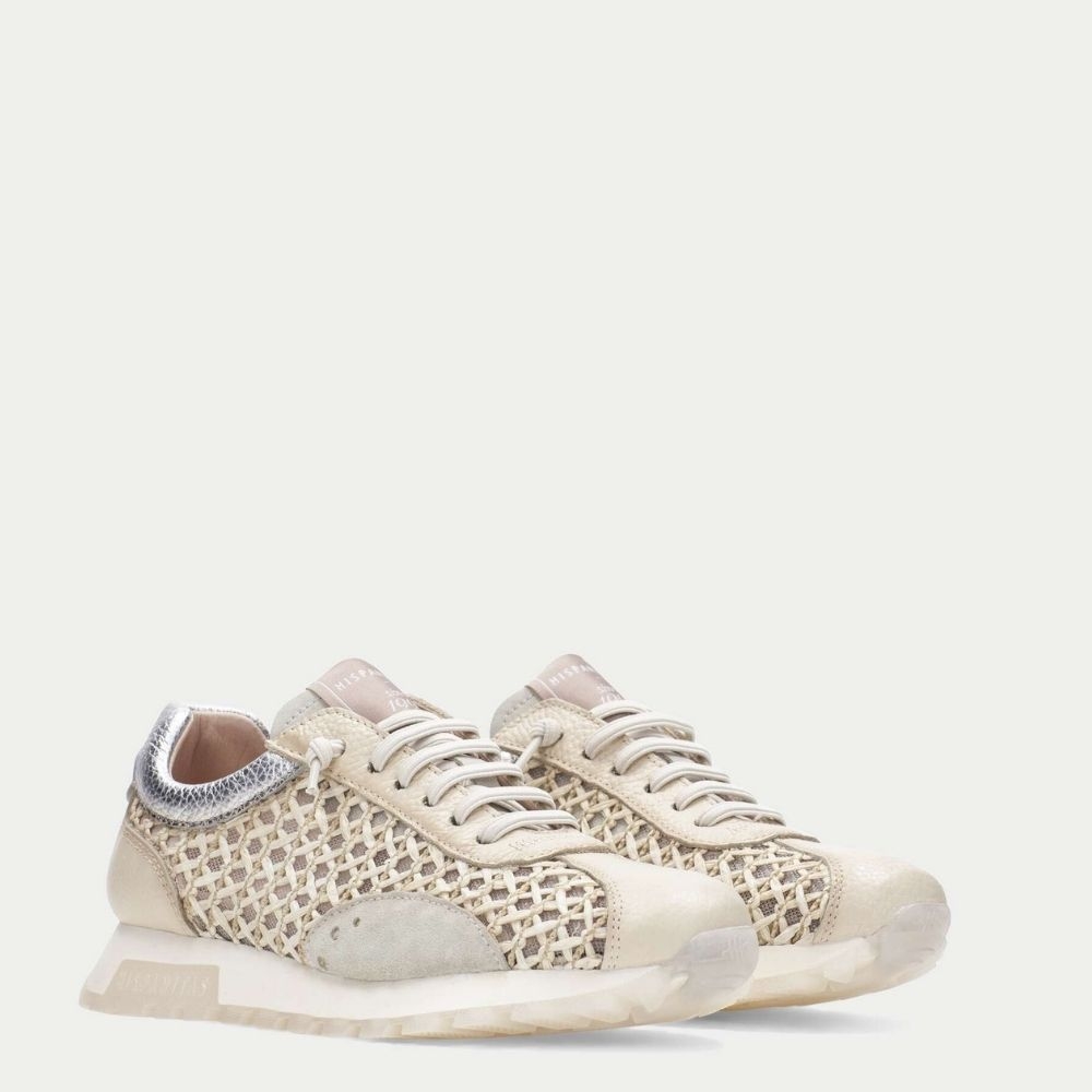 Las zapatillas Hispanitas 264741 trenzadas en beigecombinan diseño artesanal con estilo contemporáneo, ofreciendo una sneaker versátil y femenina pensada tanto para el uso urbano como para looks casual de temporada. Con una suela de 2,5 cm de altura, estas zapatillas aportan un perfil bajo que favorece la comodidad sin renunciar al estilo.