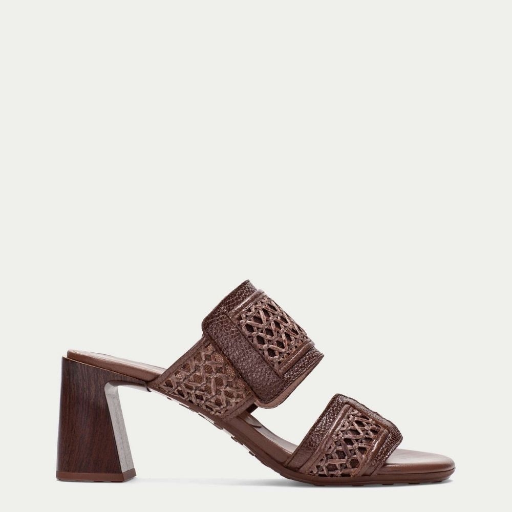 Mule Hispanitas 264747 Marrón de Rafia y Piel con Tacón Ancho Cómodo