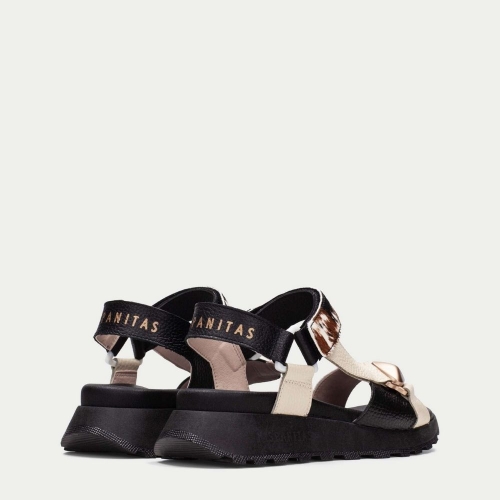 La sandalia Hispanitas 264807 en color negro es un modelo sport–casual pensado para mujeres que buscan comodidad, ligereza y estilo en su calzado diario. Su diseño híbrido combina una estética deportiva con un acabado limpio y elegante, ideal para acompañar looks urbanos y veraniegos.