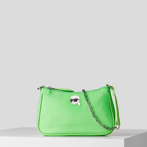 Este bolso de hombro minimalista está confeccionado en resistente nailon reciclado y viene adornado con una correa de cadena para el hombro. Un accesorio ideal tanto de día como de noche. El diseño renovado de Ikonik Karl, inspirado en la exitosa colección NFT digital, completa este práctico accesorio básico.