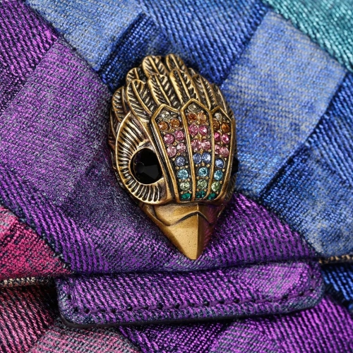 Su icónica cabeza de águila en latón envejecido con cristales preside la solapa delantera, símbolo indiscutible de la elegancia atrevida de la firma londinense. La cadena de latón envejecido permite llevarlo al hombro o cruzado, adaptándose a tu estilo y ocasión.