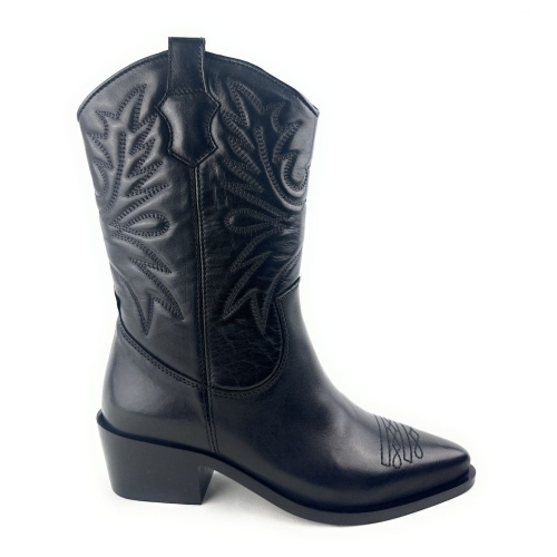 Las botas cowboy EBRO están confeccionadas en piel con paneles de piel al tono. Su diseño se completa con la combinación de puntadas claras que forman un dibujo exclusivo en las camperas. Su tacón grueso inclinados con un aire Americano. Actuales y a la moda serán suficientes para crear un look espectacular.