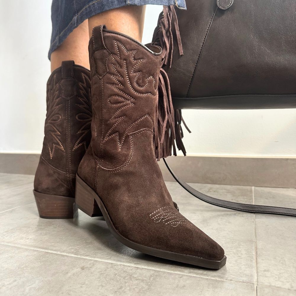Bota campera de piel ante en color marrón.