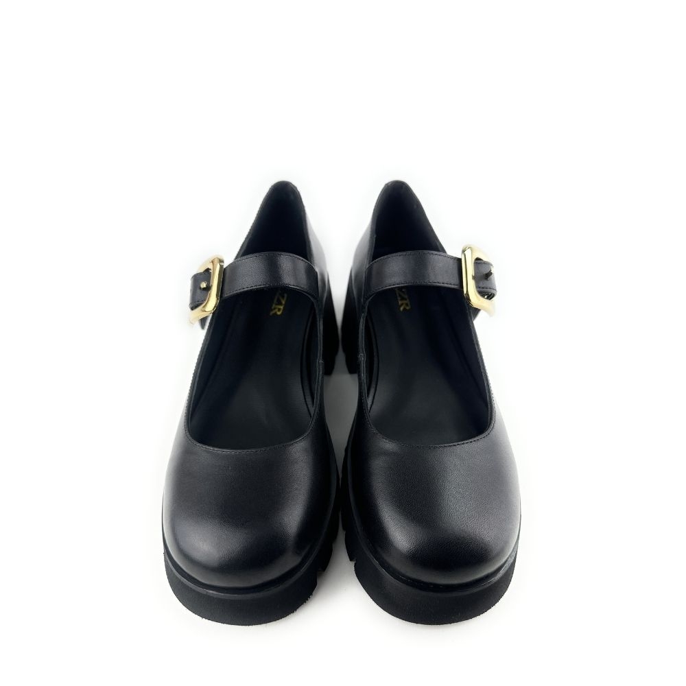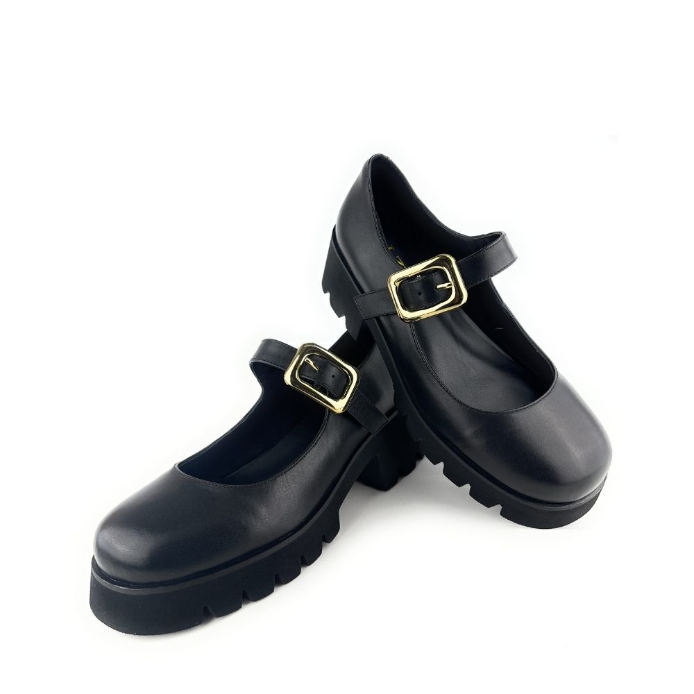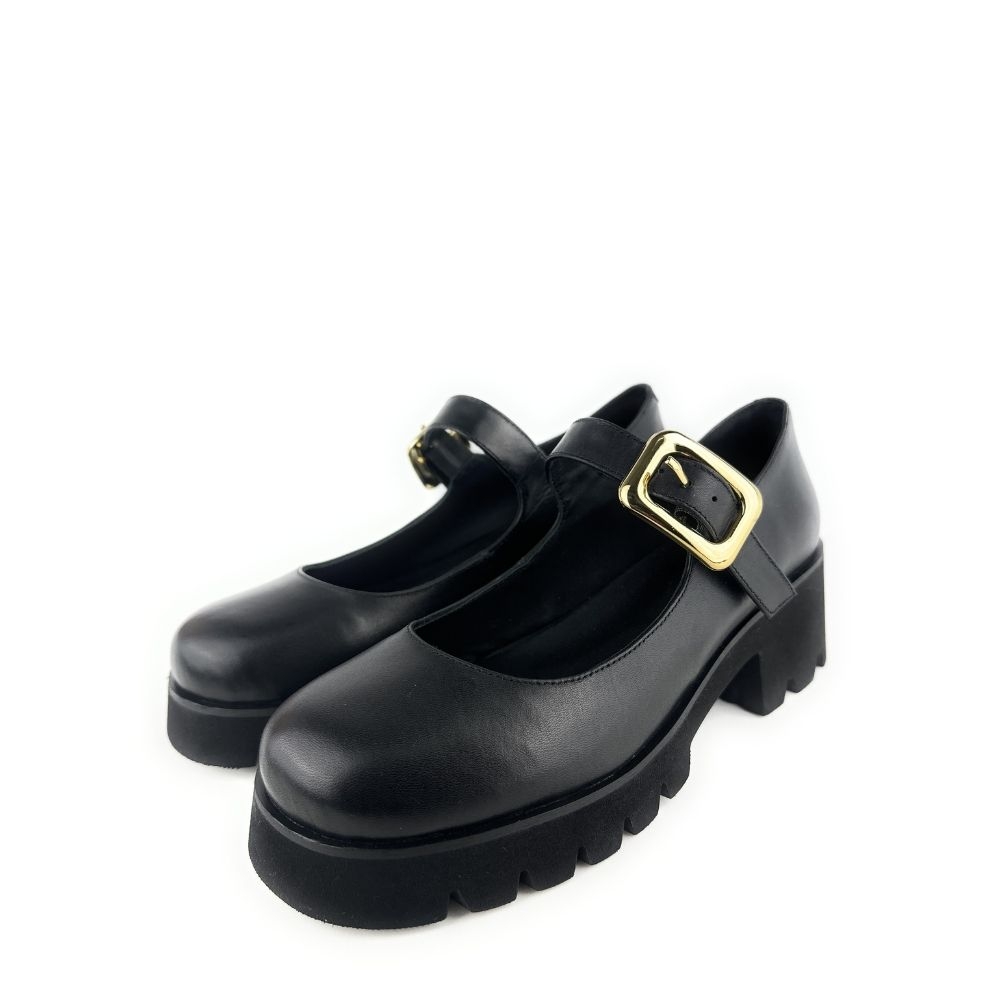 Zapato de volumen tipo MARY JANE. Confeccionado delicadamente en piel de color negro. Ligeras y listas para que la puedas llevar con cualquier outfit. ¿A que esperas ) ?
