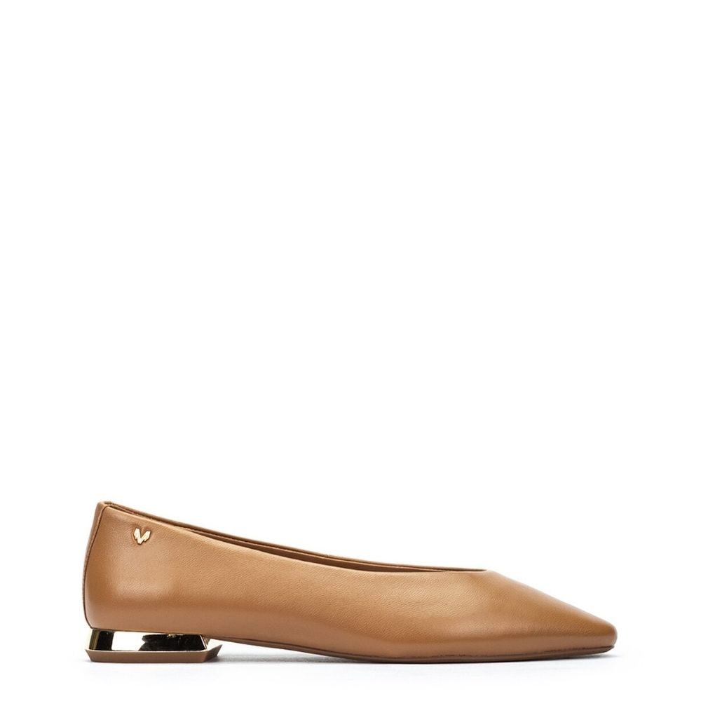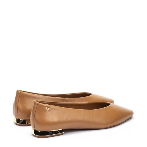 La bailarina Vescia en color camel combina estilo y confort para el uso diario. Confeccionada en piel caprino de alta calidad, su tacón metalizado de 2,3 cm y punta almendrada proporcionan comodidad y un toque elegante. Perfecta para looks casuales o de oficina, esta bailarina ofrece soporte, suavidad y tecnología Extra Confort para que cada paso sea una experiencia agradable.