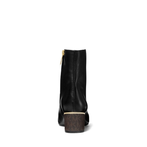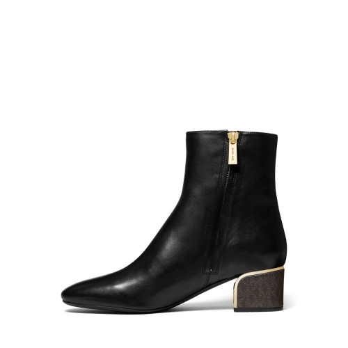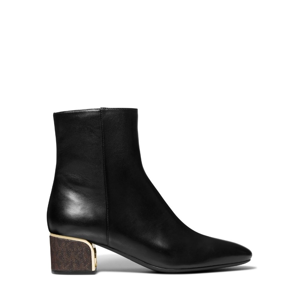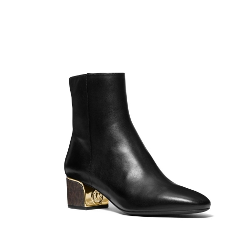 Un empeine de cuero suave sustenta este botín de tacón comodísimo. Dicho tacón consta de un filo en la parte delantera dorado, que permitirá dar un toque sofisticado y elegante a tu look de día y de noche.