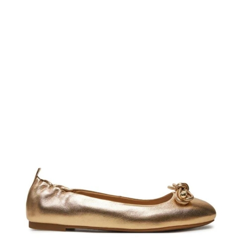 Esta versión de las bailarinas planas para la nueva temporada se ha fabricado en piel metalizada, por lo que añade una dosis de glamour a cualquier look. El delicado lazo y la puntera cuadrada aportan un toque femenino al diseño clásico, mientras que las tiras de cuero entrecruzadas mantienen el pie cómodamente sujeto. Creemos que son el complemento infalible para tus vaqueros tipo boyfriend y tus vestidos midi.