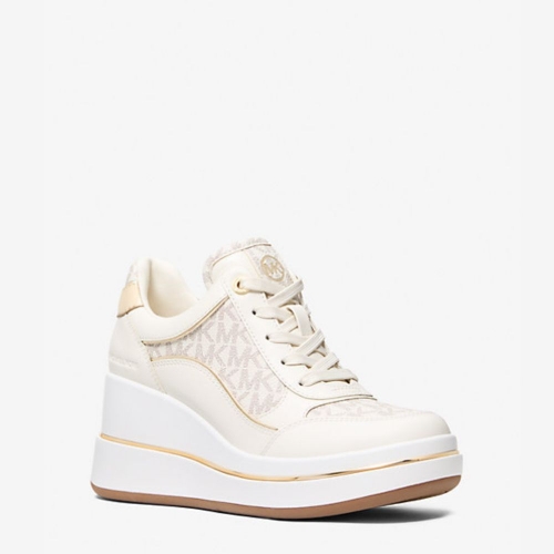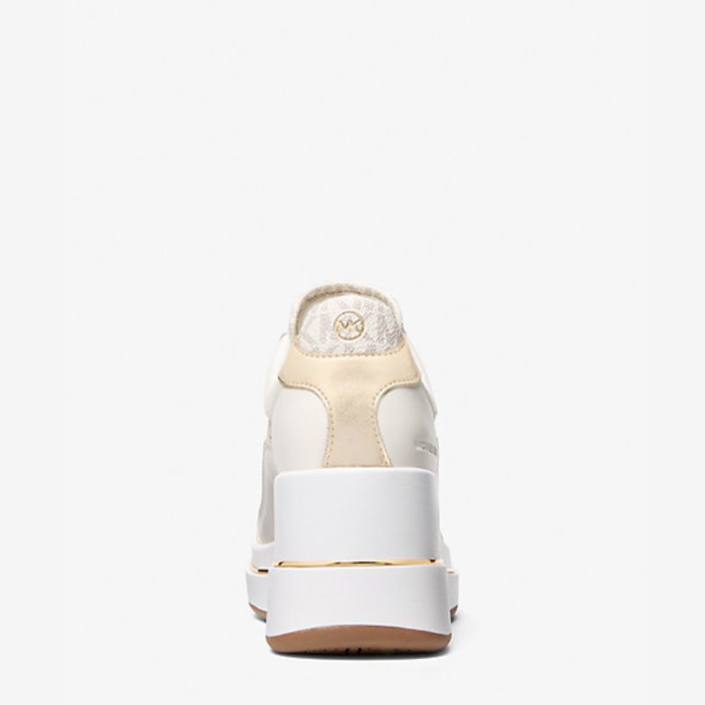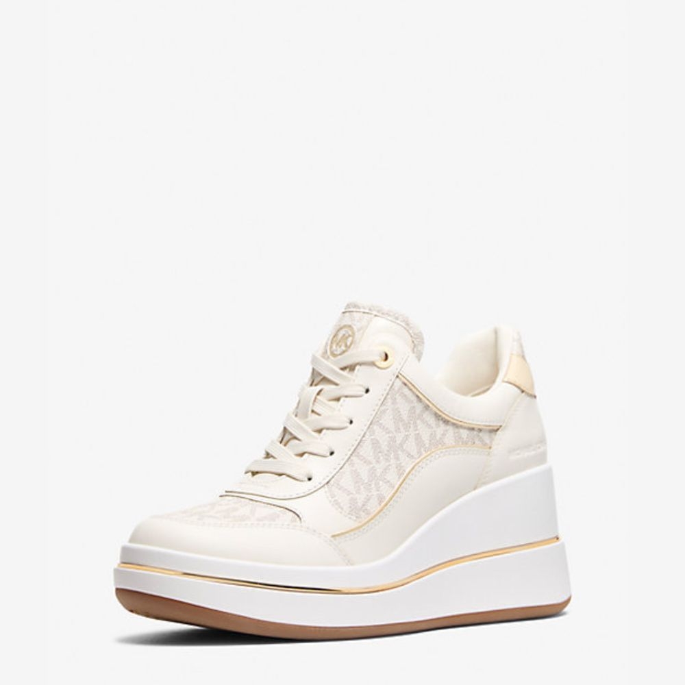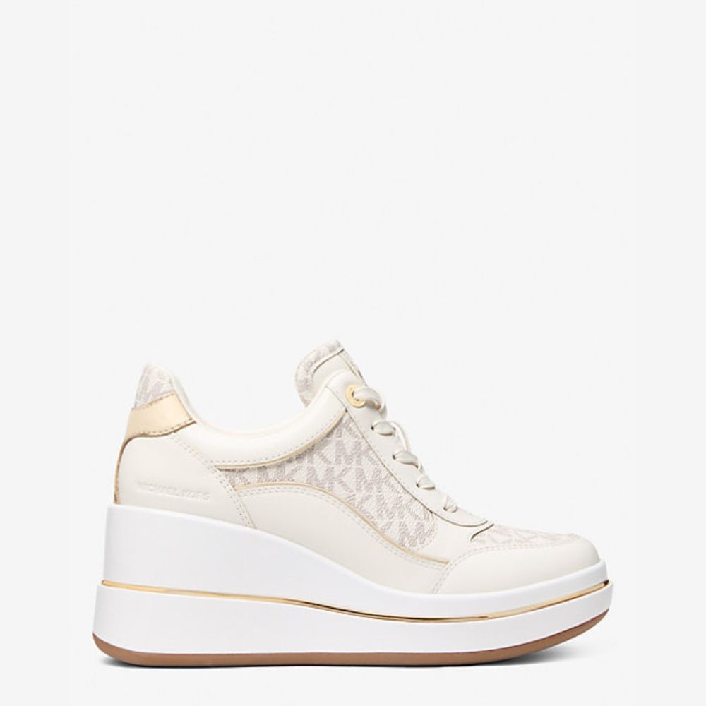 Es la combinación perfecta de moda y comodidad. Su diseño de cuña oculta estiliza tu figura de forma sutil, dándote ese toque de altura sin sacrificar el confort que necesitas para el día a día. Fabricada en piel de alta calidad, con el icónico logotipo de Michael Kors, esta zapatilla no solo se ve increíble, sino que está hecha para durar.