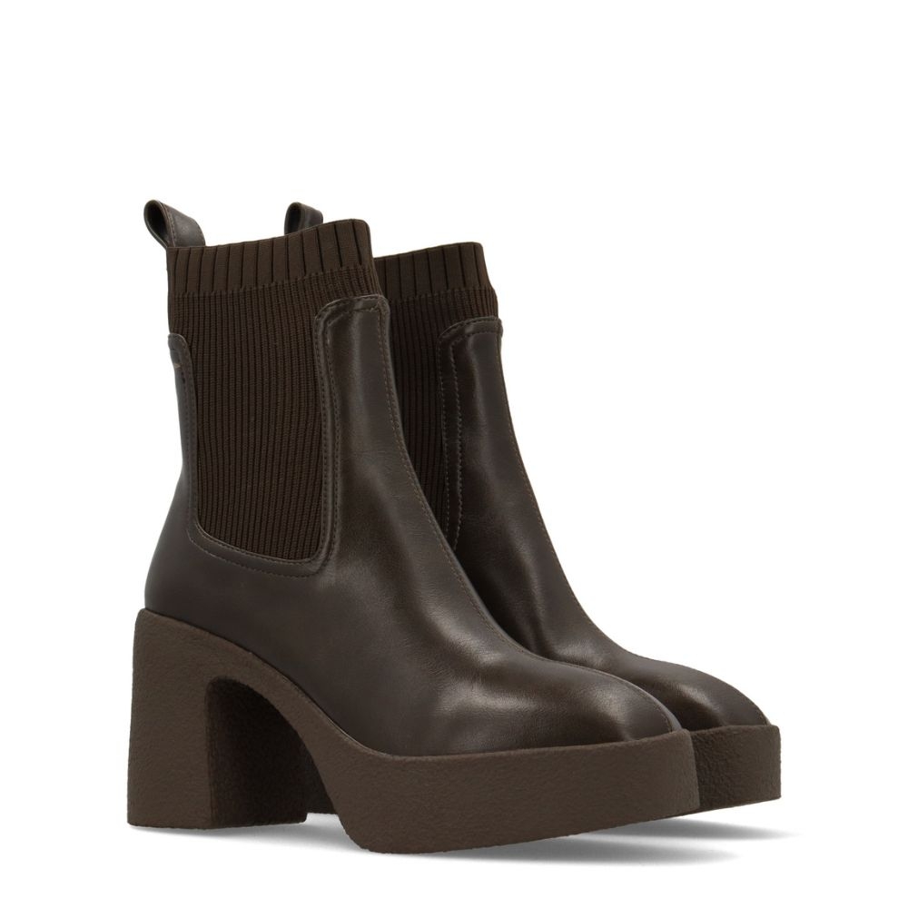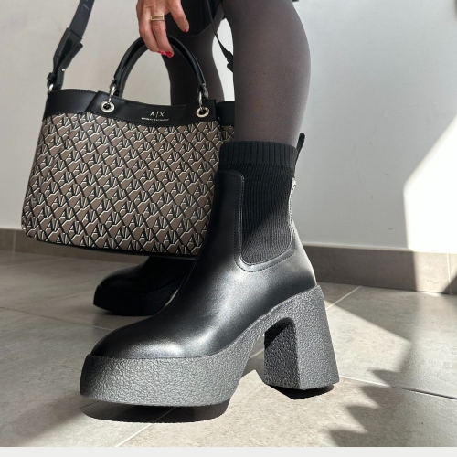 Este botín es una joya de la ingeniería y el estilo. Su tacón ancho y alto, combinado con una plataforma elevada de goma, te proporciona la altura que buscas sin sacrificar la estabilidad. Camina, baila y disfruta de la noche con total confianza. Pero lo que realmente lo hace único es su diseño: el elástico tipo calcetín en el tobillo no solo le da un toque moderno y atrevido, sino que también garantiza un ajuste perfecto y una comodidad inigualable. La piel lisa del botín complementa este detalle, creando un contraste de texturas que es puro lujo y sofisticación.