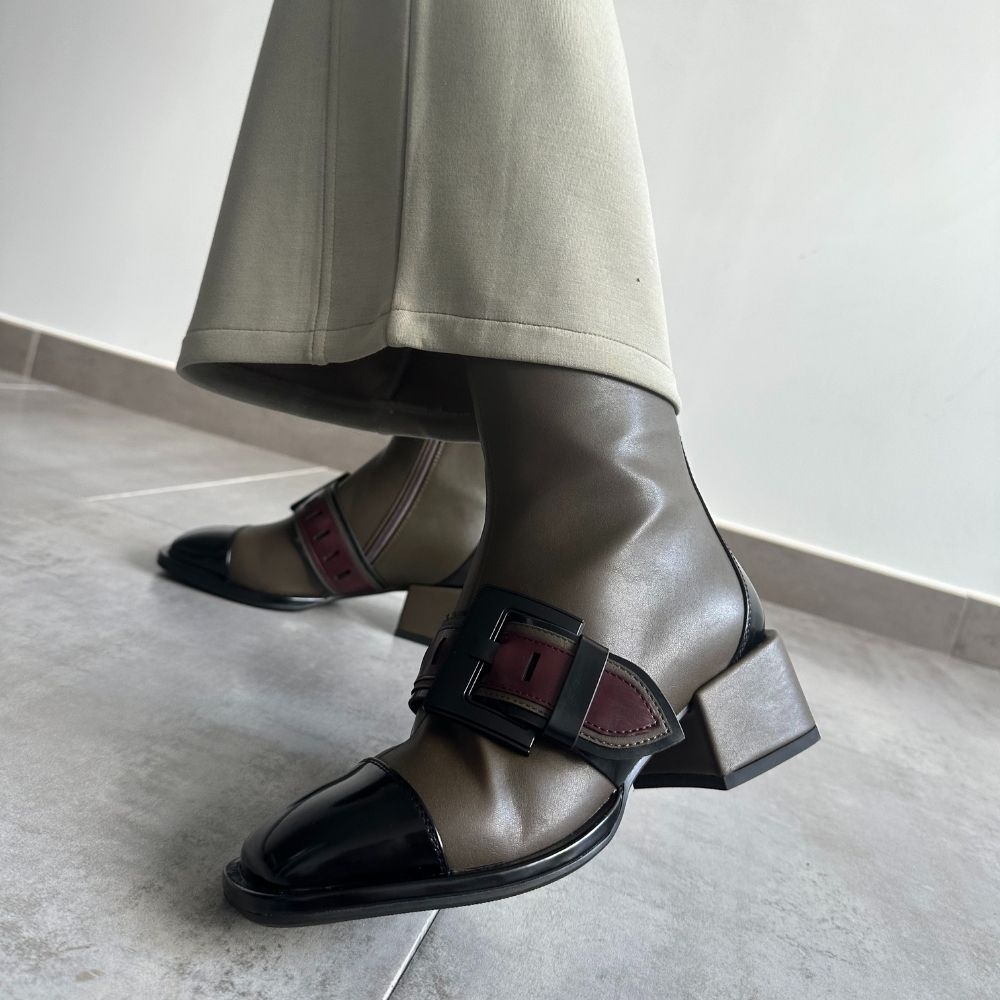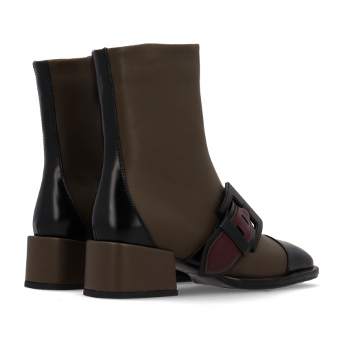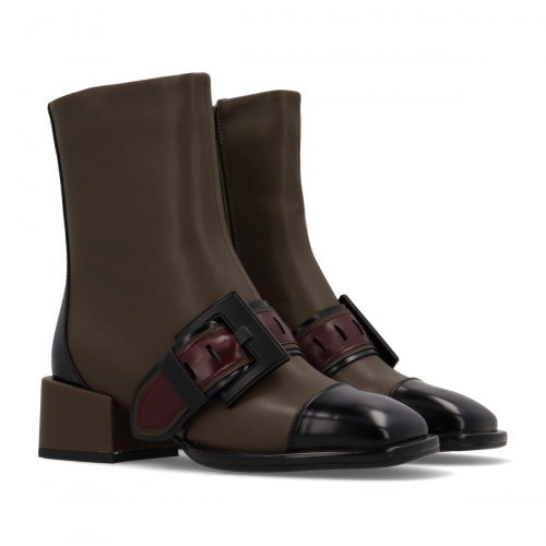 La sofisticación se encuentra en los detalles. La hebilla de adorno en el empeine le da un toque distintivo y la punta redonda estiliza tu pie, mientras que el tacón en un color diferente eleva el diseño, demostrando un cuidado por cada elemento. Este botín es una pieza de colección que te permitirá crear looks únicos, desde un estilo casual con jeans hasta un conjunto más formal con falda midi.