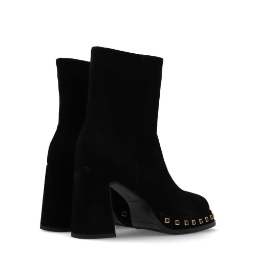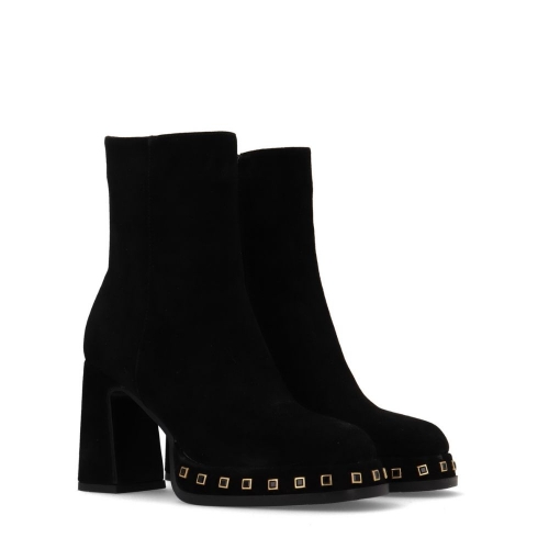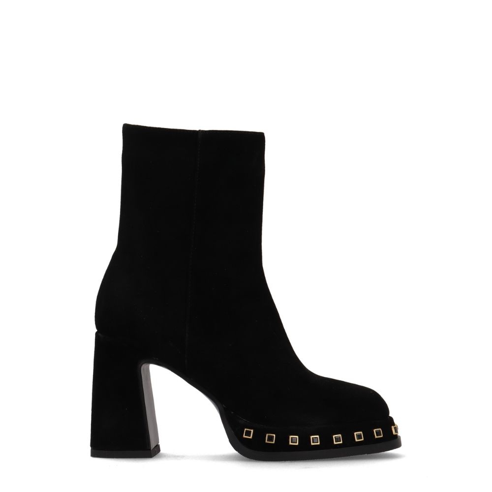 Este botín es el equilibrio perfecto entre audacia y sofisticación. Su tacón medio-alto y su plataforma vestidora no solo te dan una altura impresionante, sino que también garantizan una pisada firme y segura gracias a su tacón ancho. Pero lo que realmente lo distingue son los detalles: las diferentes tachuelas en la plataforma le dan un aire rockero y de alta costura, transformando un botín clásico en una declaración de estilo.