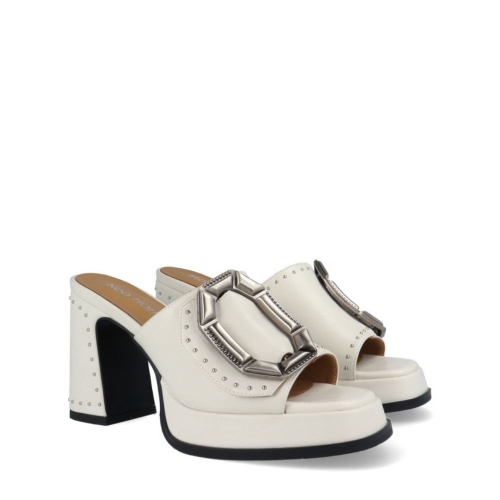 Zueco blanco roto con plataforma de Noa Harmon, con forro y planta de piel, te enamorará