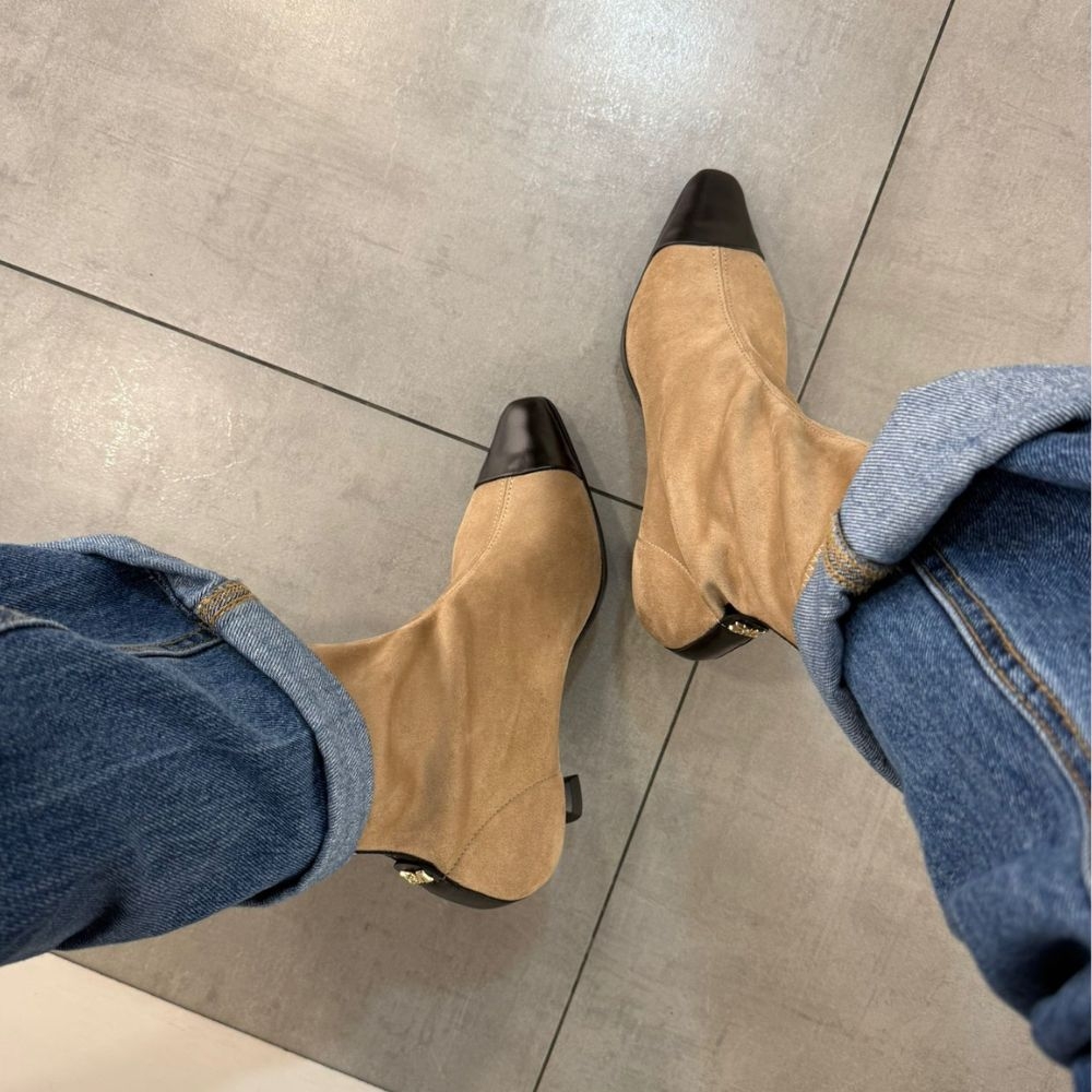 Los botines de ante beige arena con punta marrón de Pedro Miralles son el equilibrio perfecto entre sofisticación y carácter. Su diseño con punta en contraste y acabado metálico sutil añade un toque de originalidad que transforma cualquier look.