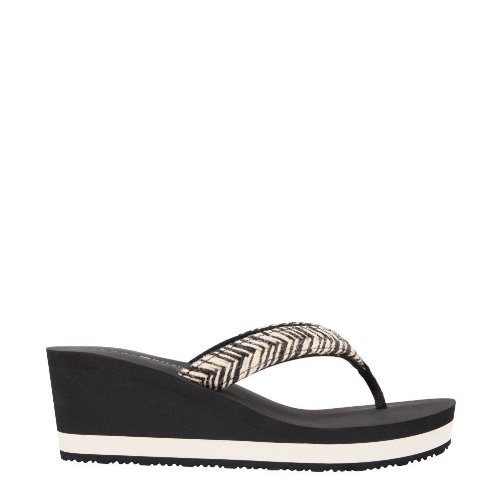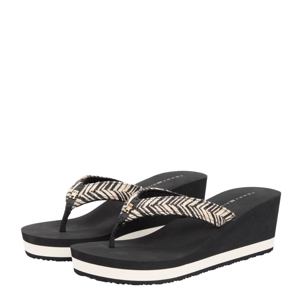 Chanclas de Cuña Alta Tommy Hilfiger Mujer Negras Monograma TH